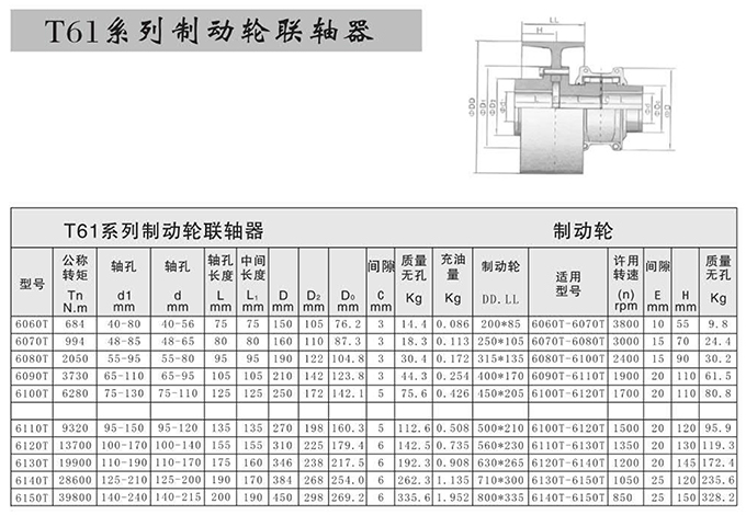 瑞安市寶德隆機械配件有限公司提供T61系列制動輪聯(lián)軸器具有拆裝方便,快速安裝等特點,廣泛用于連接/固定輪轂孔和零件的軸,例如齒輪,錐齒輪,鏈輪,葉輪,凸輪,皮帶輪和飛輪等軸的聯(lián)結(jié)固定,咨詢電話:18906872378