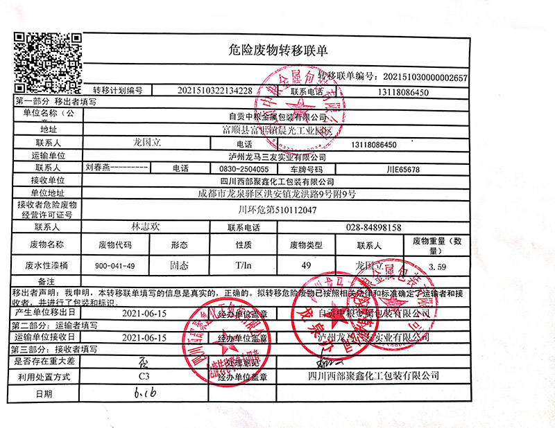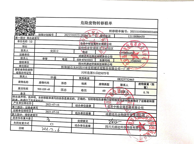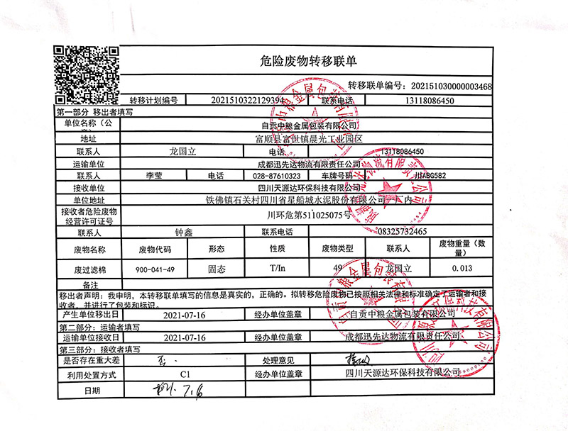 危險廢物轉移聯(lián)單